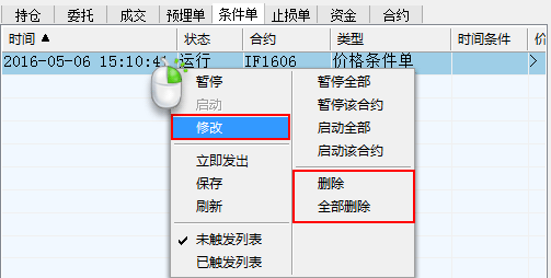 答:如下图所示是如何修改、删除条件单。