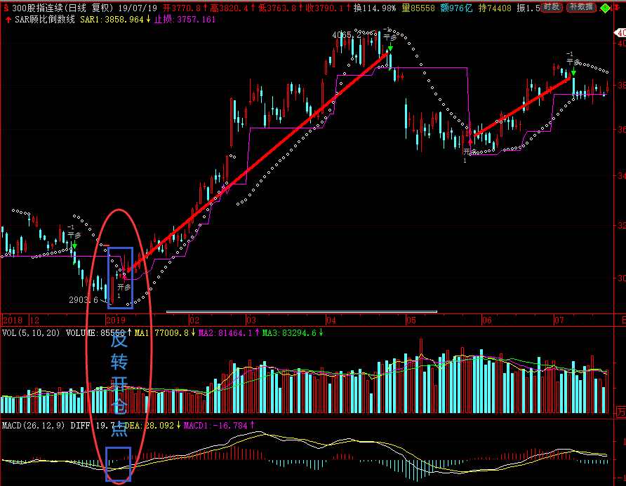 SAR指标,通过前期的高低点,来研判行情反转,简单易懂、稳重可靠,长期使用SAR指标虽不能买进最低价,也不能卖出最高价,但可以避免长期套牢的危险,同时又能避免错失牛股行情,深受广大中小投资者的喜爱。