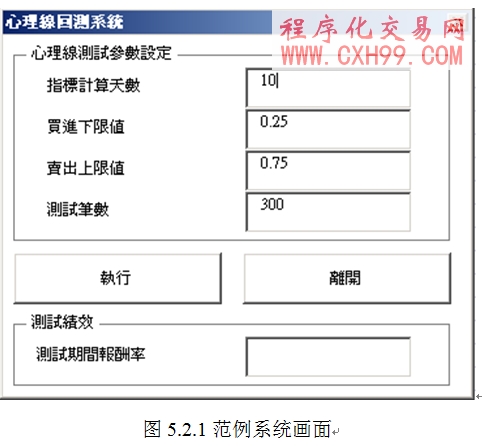 此例中,为了让「心理线指针回溯测试模型」更加具备弹性,我们把指针参数(心理线计算期间、心理线判断下限、心理线判断上限与分析期间等四个参数),拉到窗体输出入接口中,如此一来,就无须在程序中调整参数。