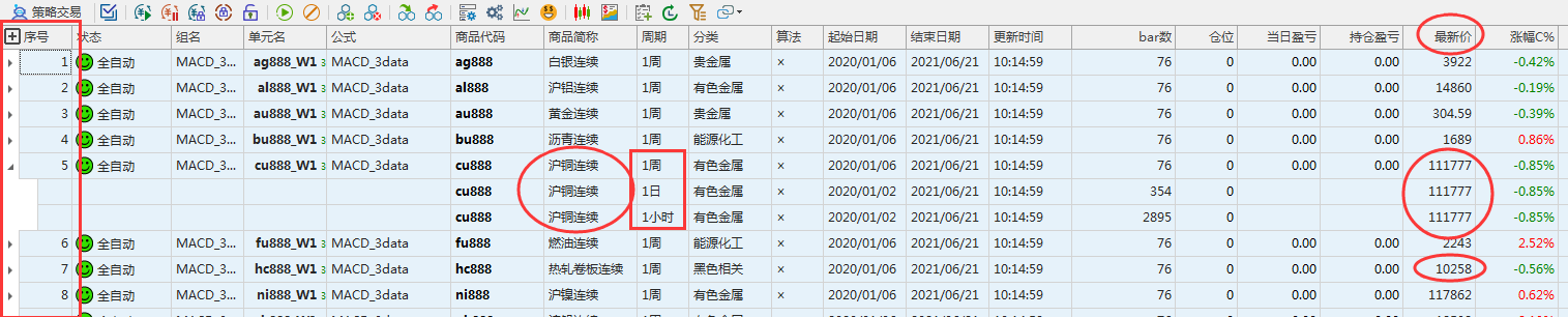 另外,策略交易功能里最新价,在用到多图层,或者单图层公式里增加了初始设置(滑点、保证金等),商品价格就显示异常。(图2)