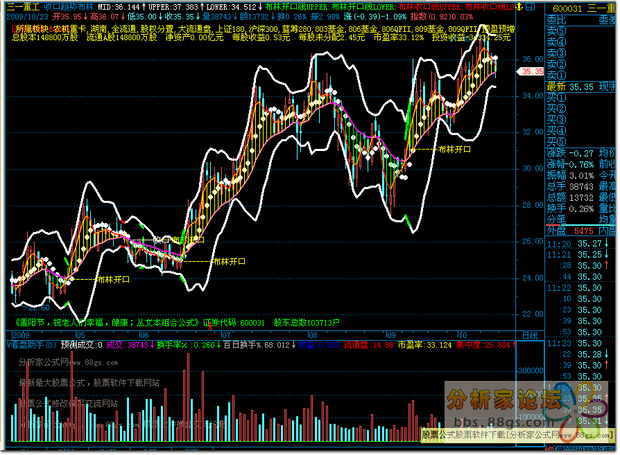 布林收口线上轨:PARTLINE(WIDTH<=0.05,上轨),COLORRED,LINETHICK3;
