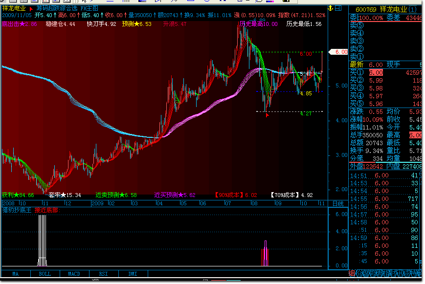 STICKLINE(乖离<-18,3,0,6,0),COLORFF35FF;cxh1:=DMA(C,V/MA(V,4)/4);