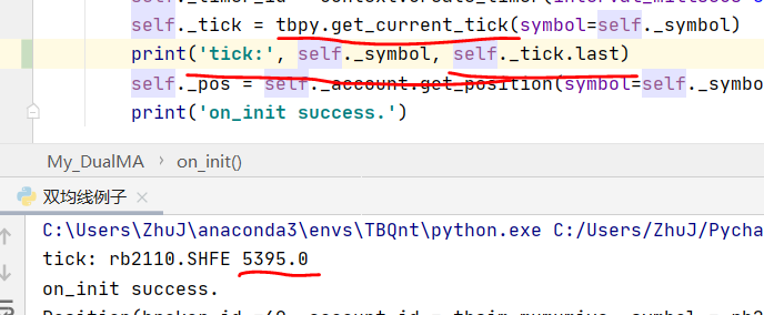 tbpy的get_current_tick(),用双均线示例同一段代码,有时候运行可以获取,有时候不能。下图1是可以的,图2则失败