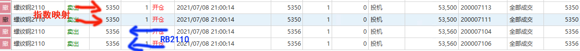RB000映射后和RB2110成交价格不同 [开拓者 TB]