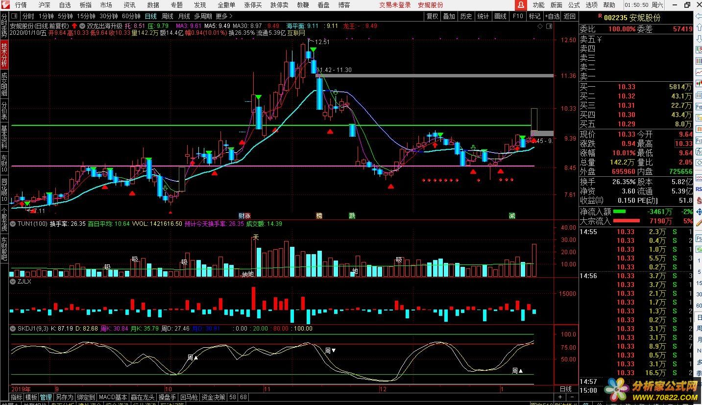 然后,在主图上用黄色图标标记出九转形态(即由下跌趋势转为上升趋势)。