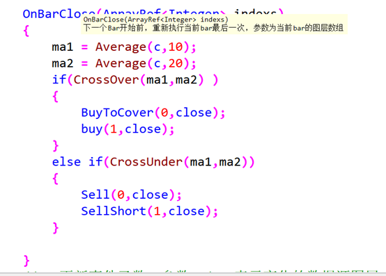以上几点是onbarclose的一些应用和设计,用户可以通过公式直接在收盘价操作,该事件让编程基础一般的朋友也能得心应手。