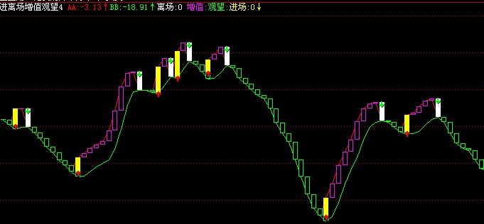 增值:STICKLINE(REF(AA,1)<AA,AA,REF(AA,1),8,1),COLORF00FF0;