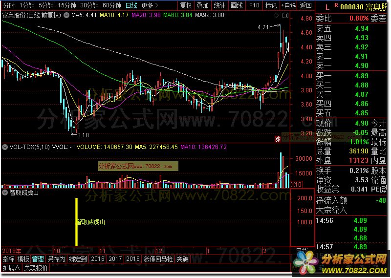 智取威虎山(通达信公式 副图指标公式 选股 公式、源码 测试图)准确 信号少[通达信公式]