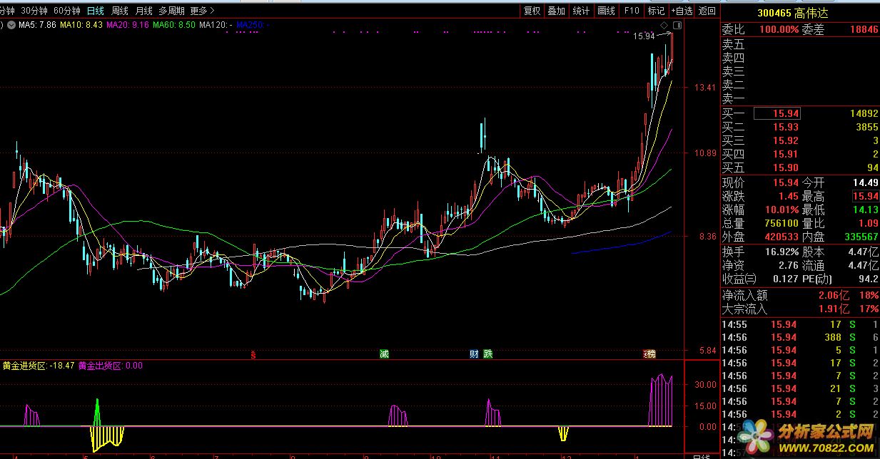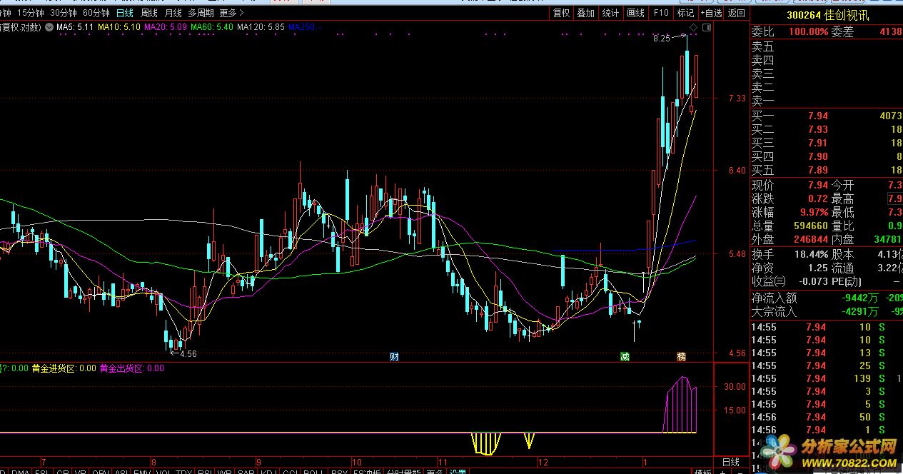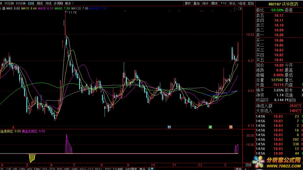 顶底区域黄金进货区副图指标公式源码[通达信公式]