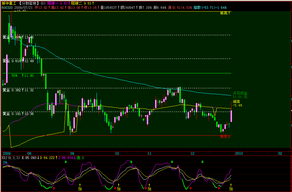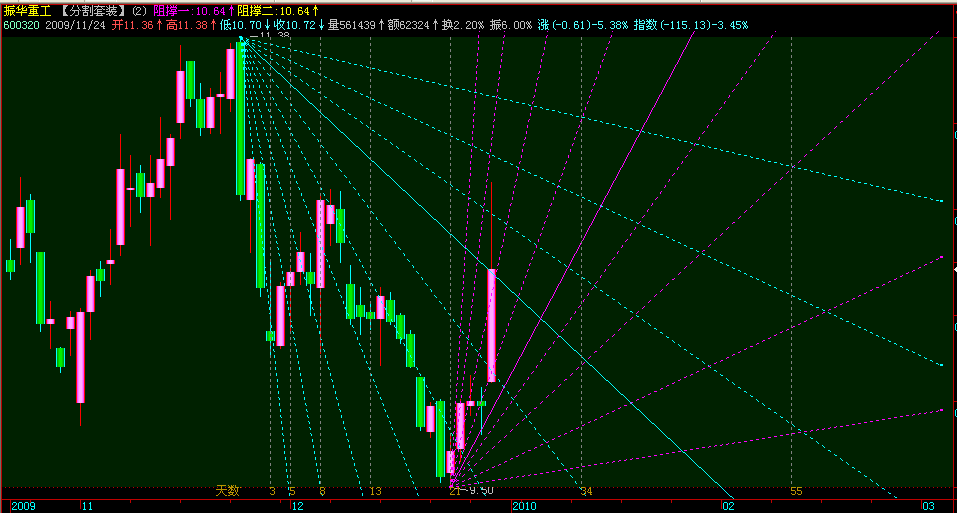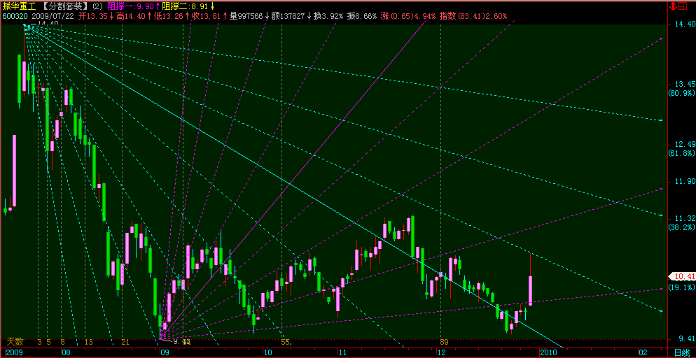 集“阻撑位”;“点石成金”;“黄金分割线”;“江恩八分线”;“江恩时间循环”;“江恩角度分割”;“费波纳茨时间周期”为一体,因系全自动画线,使用非常简单方便........