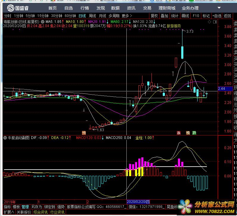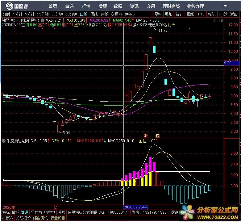 MACD120和MACD250:这是MACD的120日和250日的相对强度指标。它们通过比较过去一段时间内的MACD值来判断股票价格的牛市启动情况。