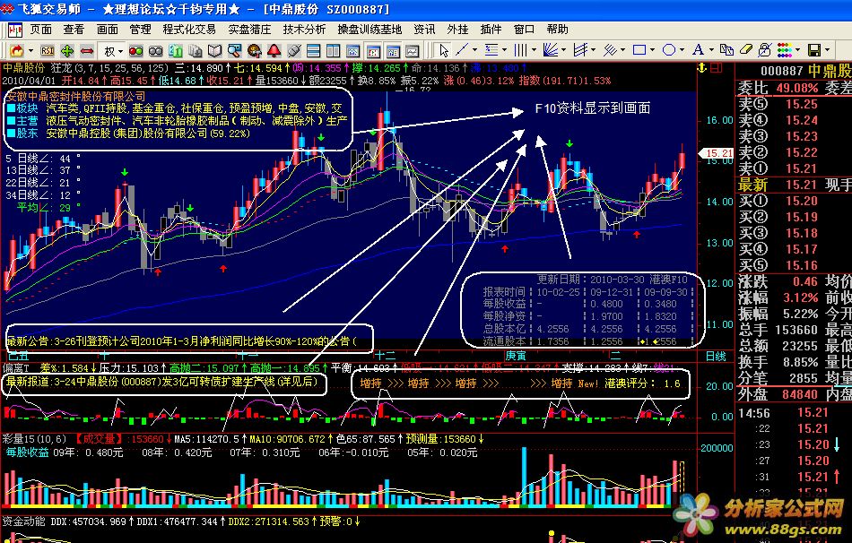 主图显示报表:(前提是必须下载港澳F10资料)