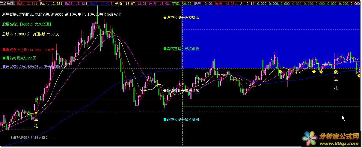 黄金柱四区 公式 指标 选股 源码[大智慧公式]