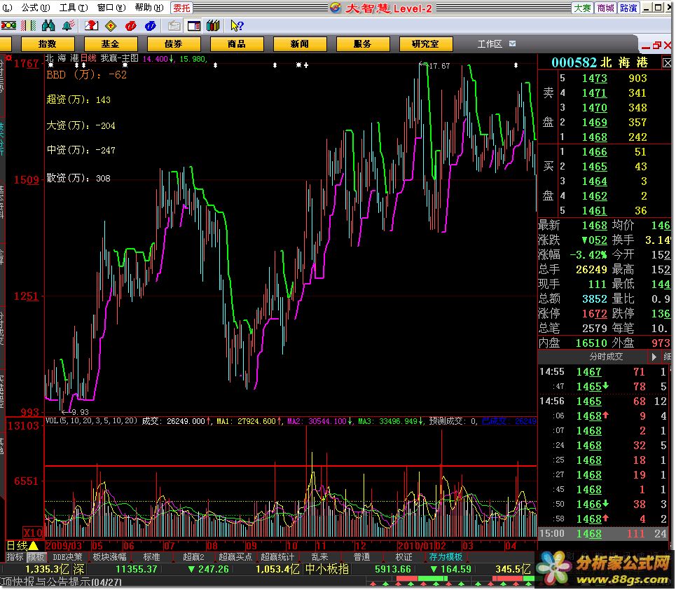 根据BBD净额(超资+大资)的数值,判断资金净流入或净流出情况,可以作为参考。
