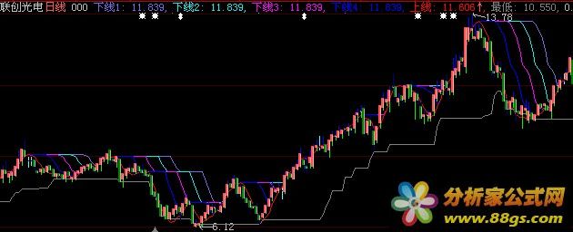 2. 下线1到下线4表示了股票价格的下行压力线,如果股票价格接近或突破这些压力线,可能会出现下跌趋势。因此,在股票价格接近这些下行压力线时,可以考虑逢高卖出。