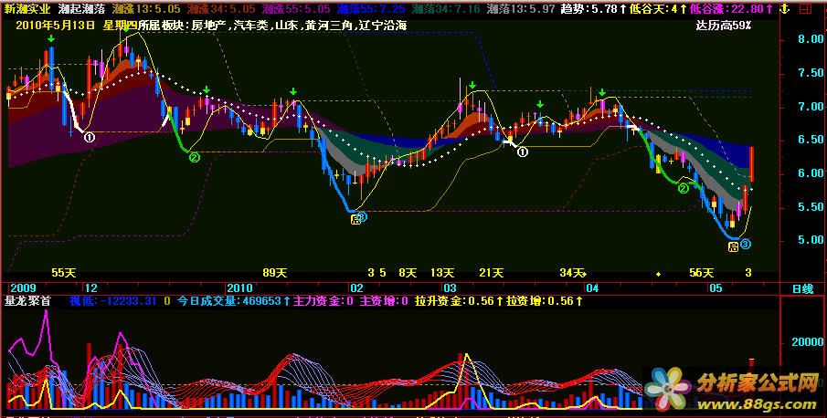 这段程序是一个基于股票市场的技术分析指标,主要包括龙聚首、成交量、资金等方面的分析。