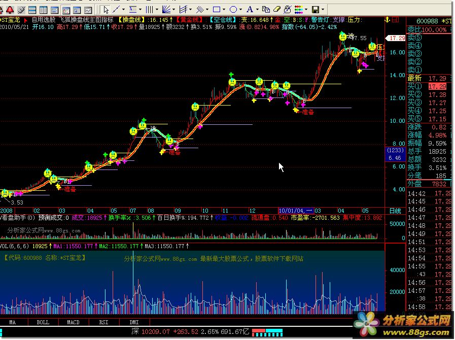 7. 警告灯、支撑和压力指标:基于历史股价的波峰和波谷,对当前股价的涨跌进行预测和提示。