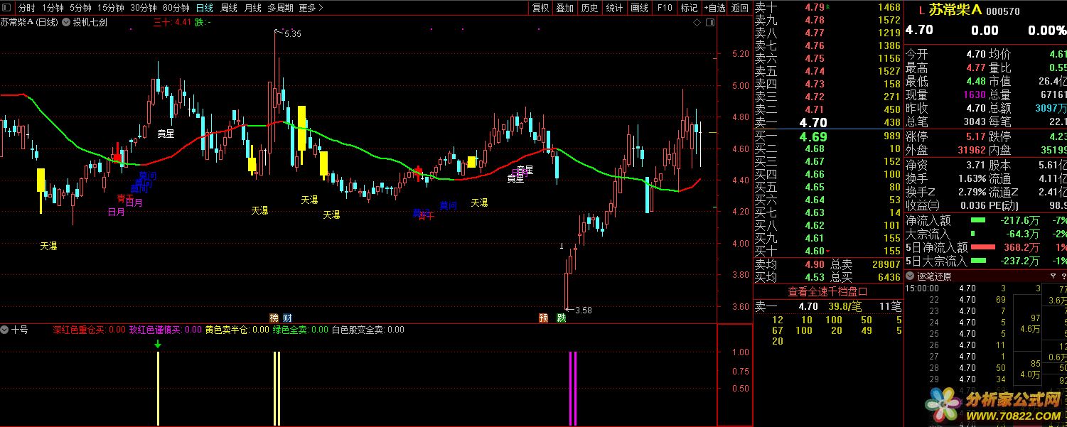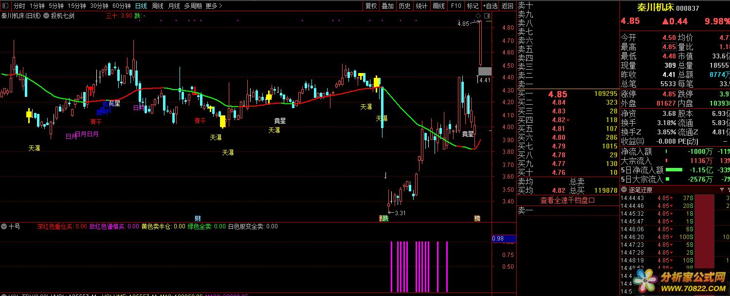 十号底部选股当然此指标不仅有底部信号也有上涨的信号,由于不是所有股票都会出信号,所以随便找了几个股票截图选股指标为底部粉红选股,指标内的说明红色信号部分看看就好,重点关注粉色出信号的票{程序化交易 www.cxh99.com }