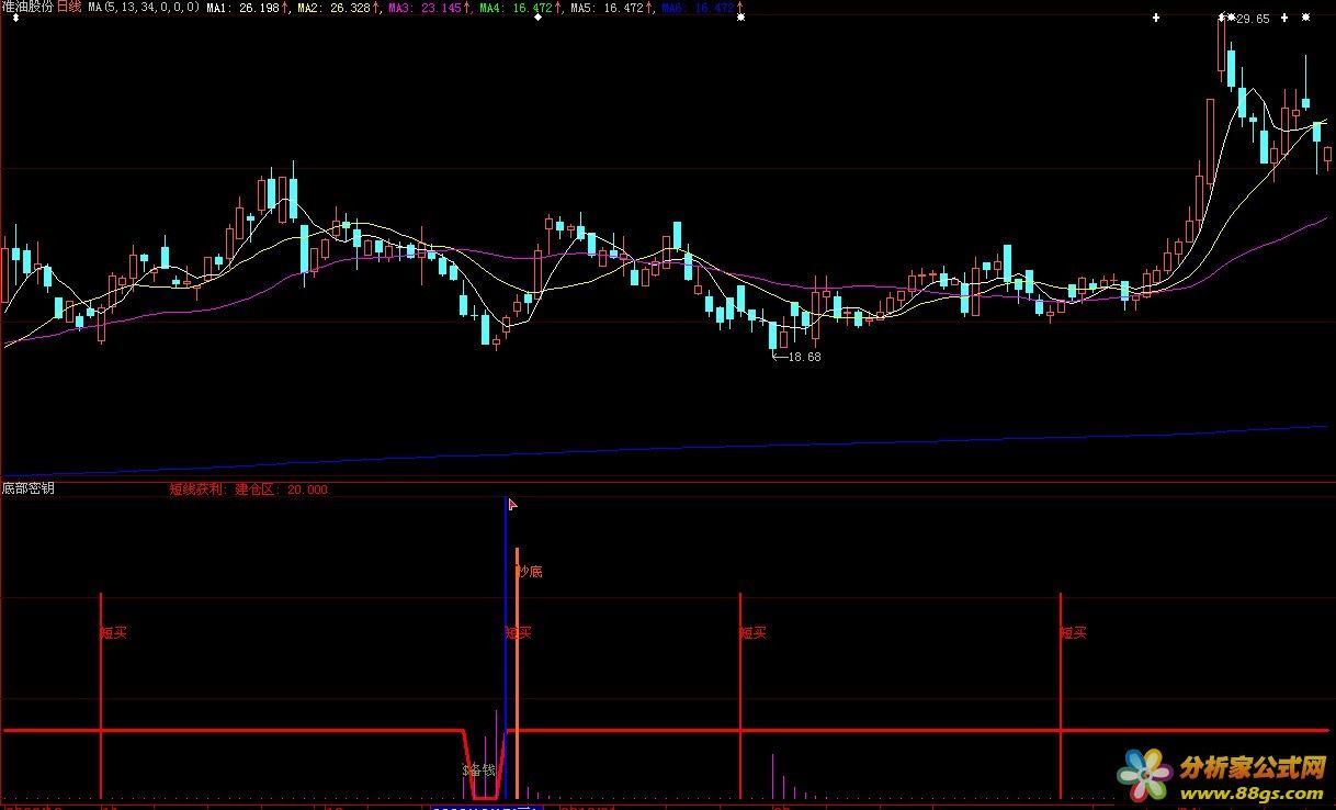 底部密钥-(自用经典~每一次指标公式出现都有一波行情!演示图 公式、源码)[大智慧公式]