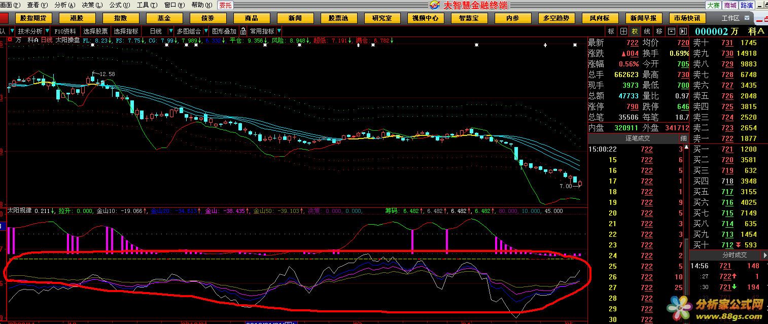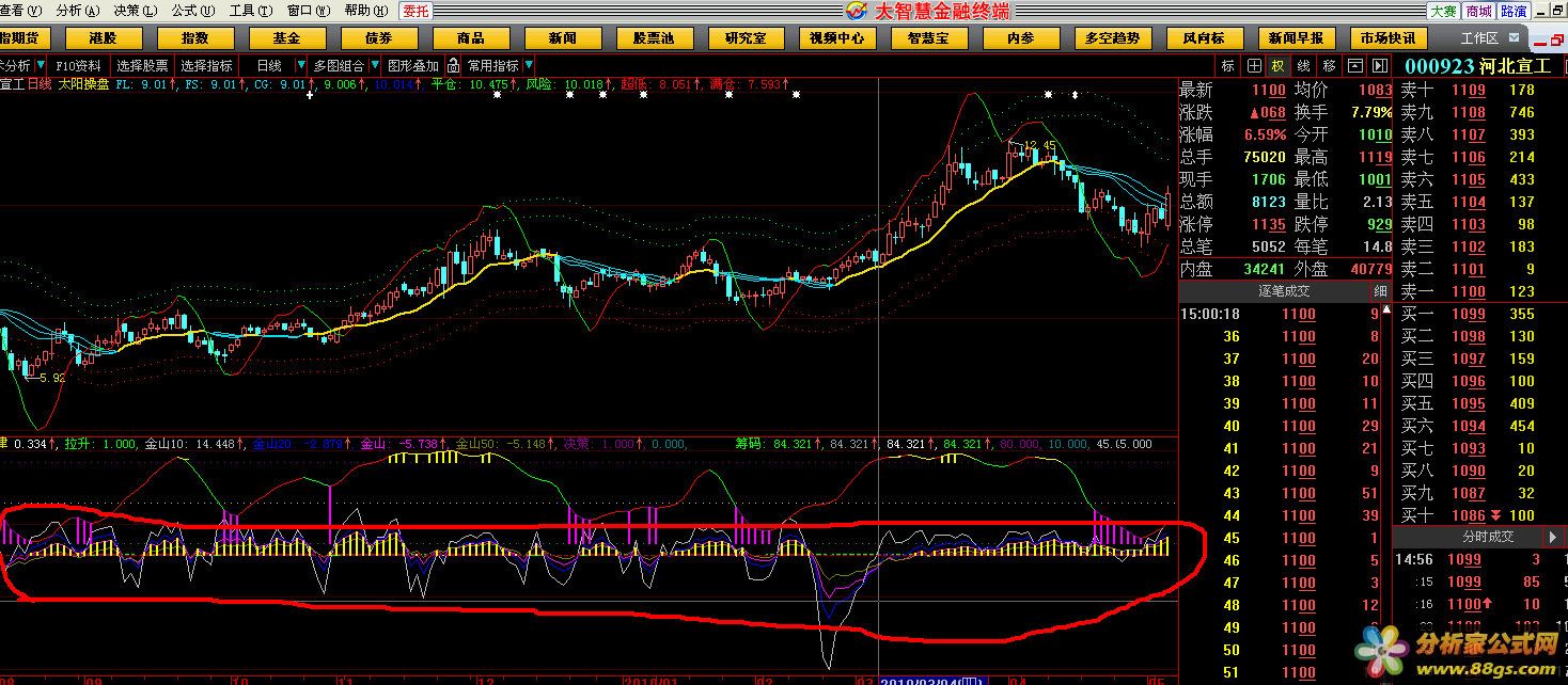 用于个股,可以研判强弱,下方资金线最近没变黄过,不要炒,没有资金运作,或运作资金太少,这样的股一般长期趴着!