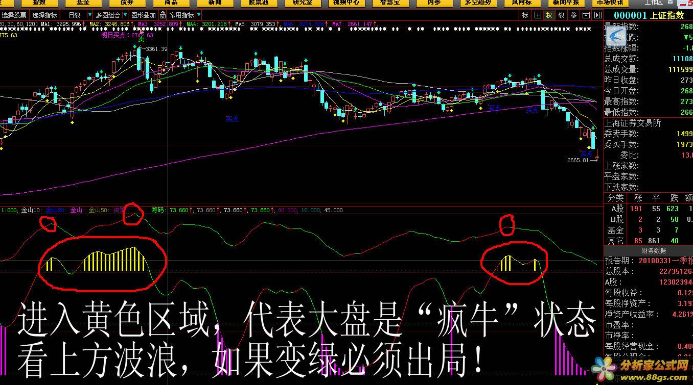 当然用于个股逃顶也是一样,需配合“太阳波浪”当然也可以是你自己的各种“波浪”。注意:黄s区域,出现逃顶信号必须出局。(这时风险大于收益)