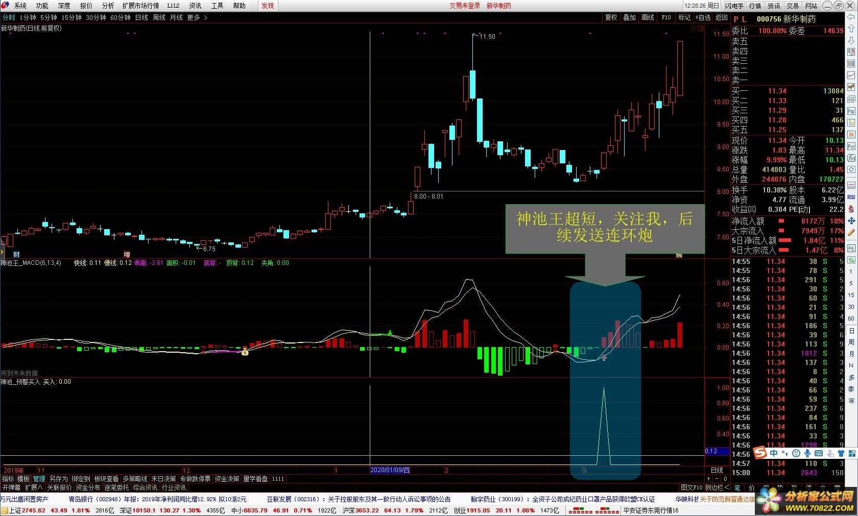 神池王超短,百年经典这是短线指标神池王超短系列发布_没有最牛,只有更牛,喜欢的下载,超短的一定不能错过!话不多说,看图,看效果关注,我会不断的发布指标尤其是【股票神池】,关注wo送神池MACD,2个配合90%成功率{程序化交易 www.cxh99.com }