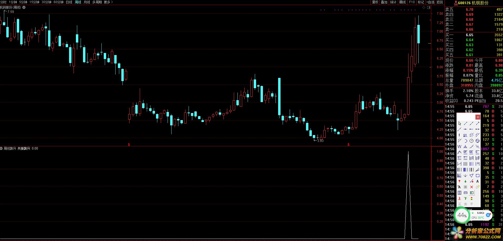 周线飙升(通达信公式 副图指标公式 公式、源码 测试图)[通达信公式]