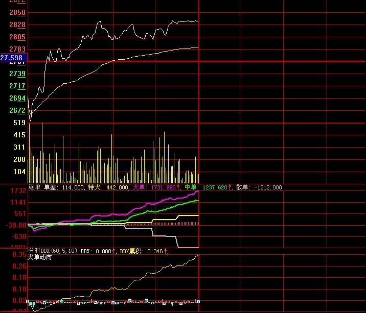 精确的分时各单情况反应,分别为大单,中单,散单和特大单。