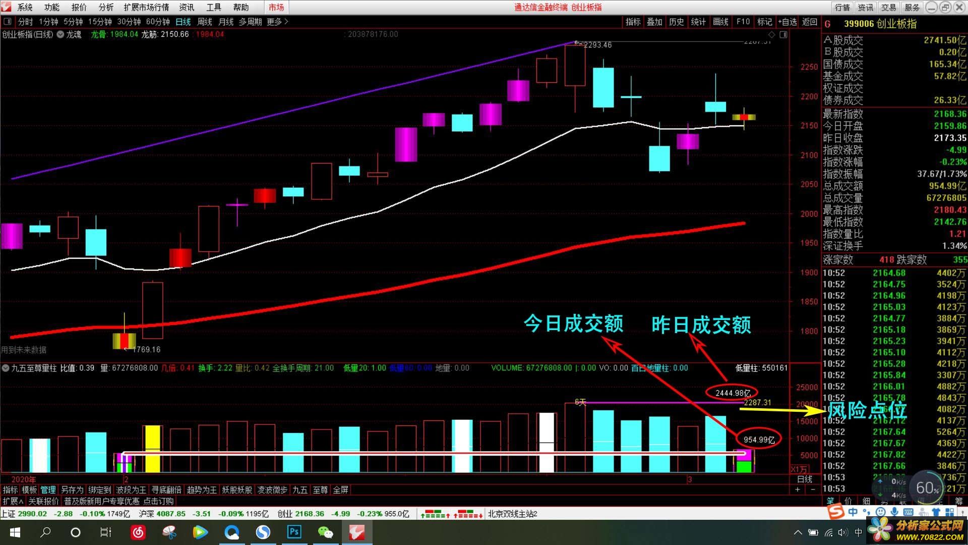 我入市之初的感受入市之初,见山是山,见水是水,几经蹉跎,见山不是山,见水不是水,而如今见山仍然是山,见水仍然是水!我再次把自己的所有理念全都写入指标,然后我又开始相信了指标了!兜兜转转一大圈,后来还是转入研究最普通的指标了,如:价柱、量柱、MACD,以前迷恋各种指标,软件上装满了花花绿绿的指标,直至账户亏损到心态崩溃后清理掉所有垃圾指标。今天我要分享的指标就是量柱,什么都可以骗人,唯独成交量难骗人。但是大部分人看量柱也只是看有无底部放量和高位放量,所有人都知道的是底部放量一般是建仓,高位放量一般是出货。但是量隐藏的信息远非这点东西,想要紧跟主力的脚步,唯一的思路就是量,主力什么都可以作假,但难免会在量柱上留下蛛丝马迹。股谚:量在价先。军马未动,粮草先行!九五至尊量柱是需要配合战法使用的,量这东西研究起来几篇帖子都写不完,后面我会在驿站里详细讲解九五至尊量柱的用法及含义。{程序化交易 www.cxh99.com }