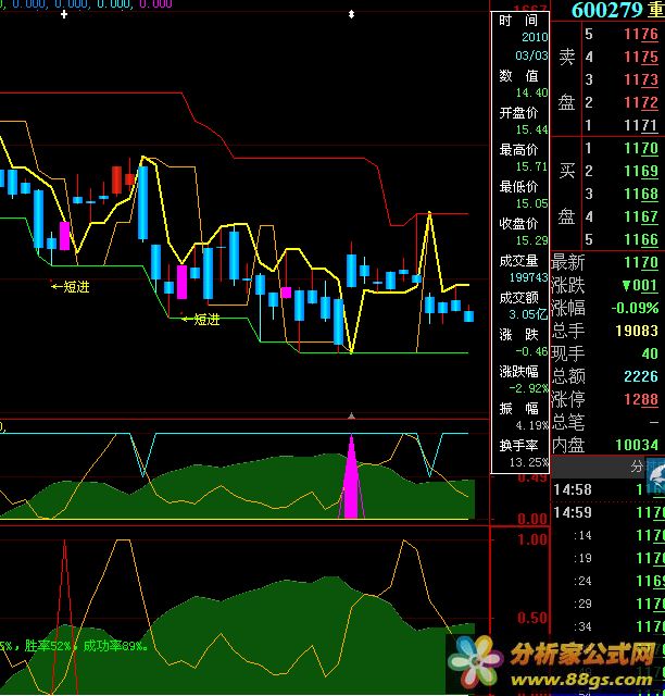 - KDJ指标:KDJ指标是根据RSV计算得出的,K值表示最近一段时间收盘价在总体范围内所处位置的百分比,D值则是K的平均值。J值则是根据K和D的关系计算得出的趋势指标。当J值从负数转为正数时,可能是买入信号;当J值从正数转为负数时,可能是卖出信号。