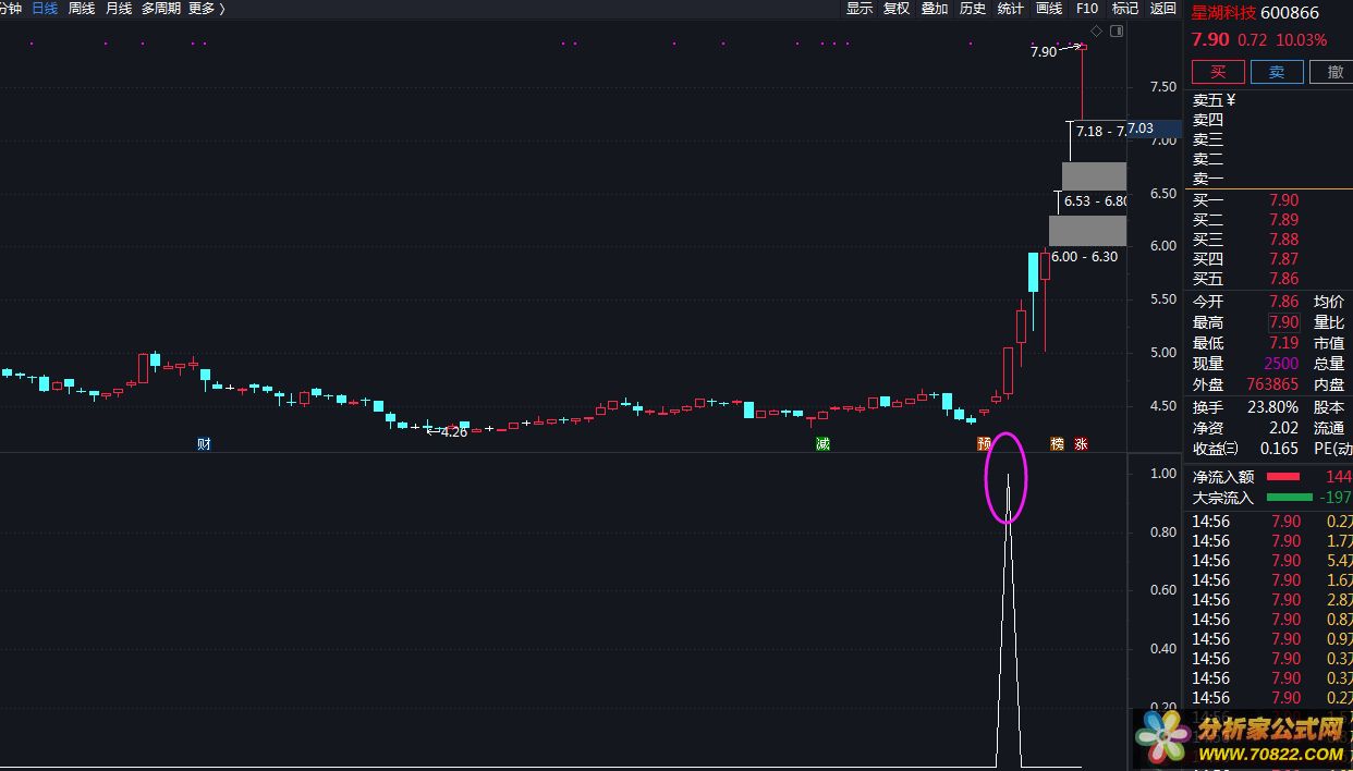 这段代码是股市技术分析指标的公式,主要涉及到移动平均线(MA)、最高价(HHV)、成交量(VOL)、MACD指标、动态信息获取(DYNAINFO)和交叉信号判断等计算。以下是对该指标的创建思路和使用参考说明: