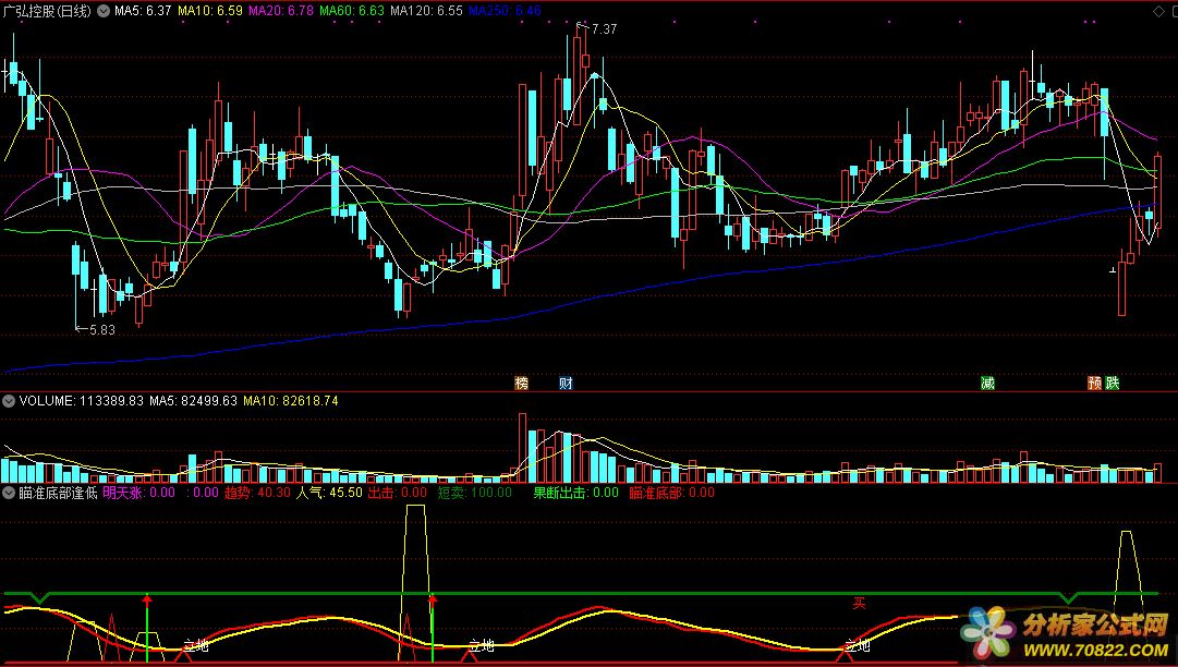逢低买明天涨,瞄准底部指标 公式 源码[通达信公式]