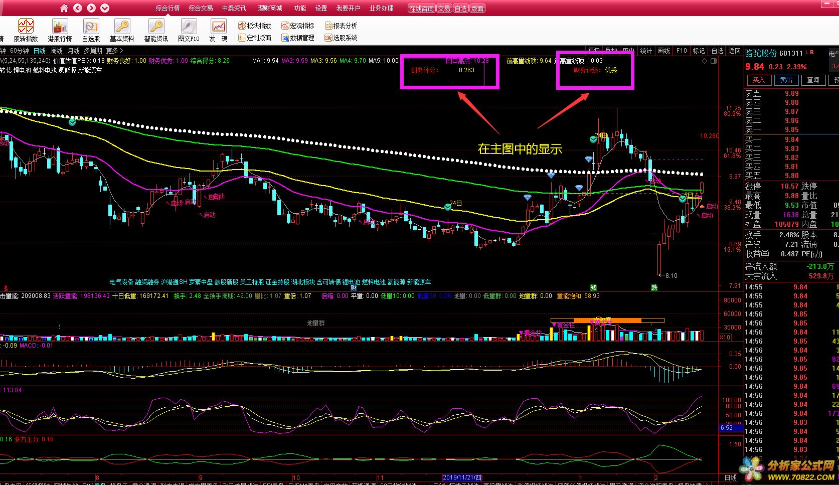 1.公式:财务良好:现金流利润比>0.5 AND 主营收入占比>50 AND 净资产收益率>5 AND每股净资产>1.5 AND 股价现金流比>0 AND 股价现金流比<80 AND 每股未分配利润>0.2 AND 销shou毛利率>10 AND 价值估值PEG<1;财务优秀:现金流利润比>0.8 AND 主营收入占比>70 AND 净资产收益率>8 AND每股净资产>2 AND 股价现金流比>0 AND 股价现金流比<60 AND 每股未分配利润>0.4 AND 销shou毛利率>20 AND 价值估值PEG<1:2.公式解释:A.股东权益报酬率即净资产收益率,越高代表盈利能力越强。本人将财务良好设为5,优秀设为8。太低了说明公司资产质量很一般。此外,指标太高,也找不出几家优秀公司了,故有些指标降一降吧,有些公司还是有潜力的。B.每股净资产:财务良好设为1.5,财务优秀设为2。每股净资产是公司历年发展逐步积累而成,1.5以下表明公司历年积累不理想。财务优秀设为2.主要考虑优秀企业送股和转增以后净资产不会太高。没必要设为更高。C.每股未分配利润:财务良好设为0.2,优秀设为0.4,太低说明公司盈利能力不好,太高没必要,好公司分配完后,未分配利润不会太高,当然不会把利润分干净,设0.4为好。D.主营收入占比:太低说明公司不务正业,不低于50;E.每股经营现金流:表明公司收到的现金,经营现金流大于利润说明公司回款良好,甚至又预收款,股价与现金流比相当于市盈率概念,但更真实,故设在0和80之间。F.每股净资产:该比例最少不能低于1元,低于1元则公司股东的权益已经受到了蚕食,公司就失去了股本扩张能力。最好是不低于发行股票时的每股净资产,超过2元为好。G.销shou毛利率= (营业收入-营业成本)/营业收入×99.99% .该比率值在10%以上方为合理,低于此值的公司获利能力差。H. PEG:是市盈率与业绩增长率之比。 PEG=每股收益/净利润增长率÷100 .如果PEG>1,股价则被高估;如果PEG<1(越小越好),说明此股票股价被低估,可以买入。PEG估值的重点在于计算股票现价的安全性和预测公司未来盈利的准确性。基于上述给予综合得分,满分在9分左右。根据得分,评级分为差.一般.良好.优秀。有图为证,公式加密,不限时。据此投资,自负盈亏。