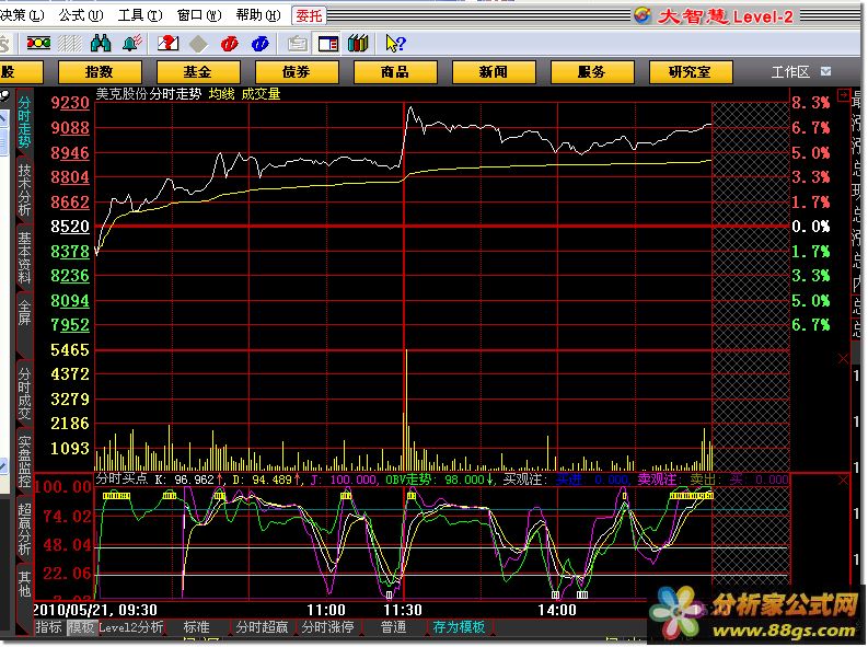 - 买观注与卖观注:通过OBV走势与AA6的差值来判断市场的买卖信号。当OBV走势与AA6的差值超过一定阈值时,产生买卖观注信号。